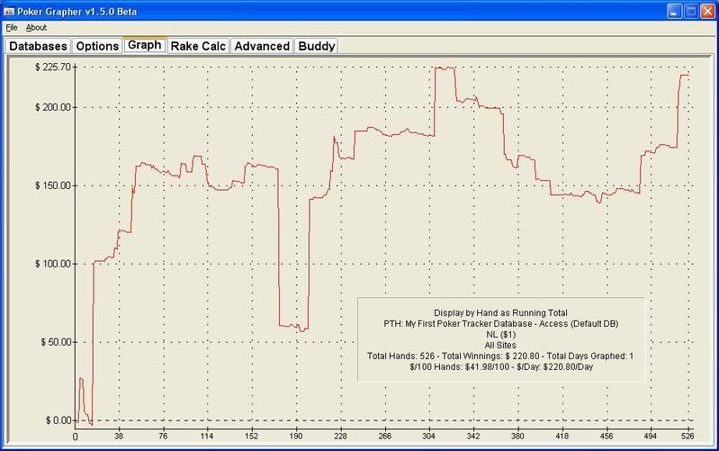 Finally had my first really great day of the month today. Wound up +$480, and was up $580 at one point late. As usual, I started the day dropping almost a buy-in in the hole but quickly found my groove. The tables were fishy and I was running well.