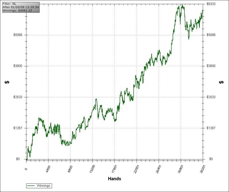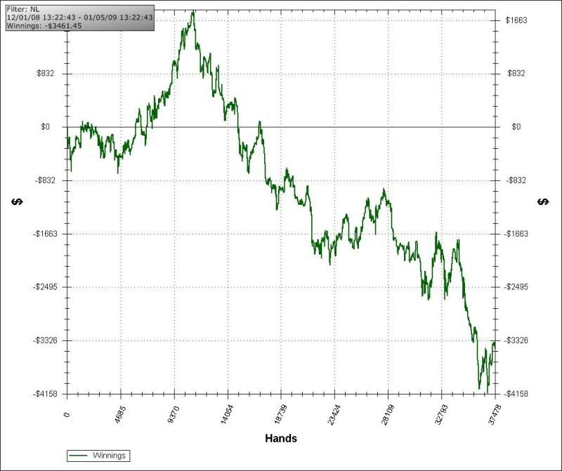 Not surprisingly, the composition of my graph looks much different than it once did. I don't feel like uploading all of the pics, suffice to say that so far this month I'm within ~$100 of breakeven in my non-showdown pots, something I've never been able to do much of before.